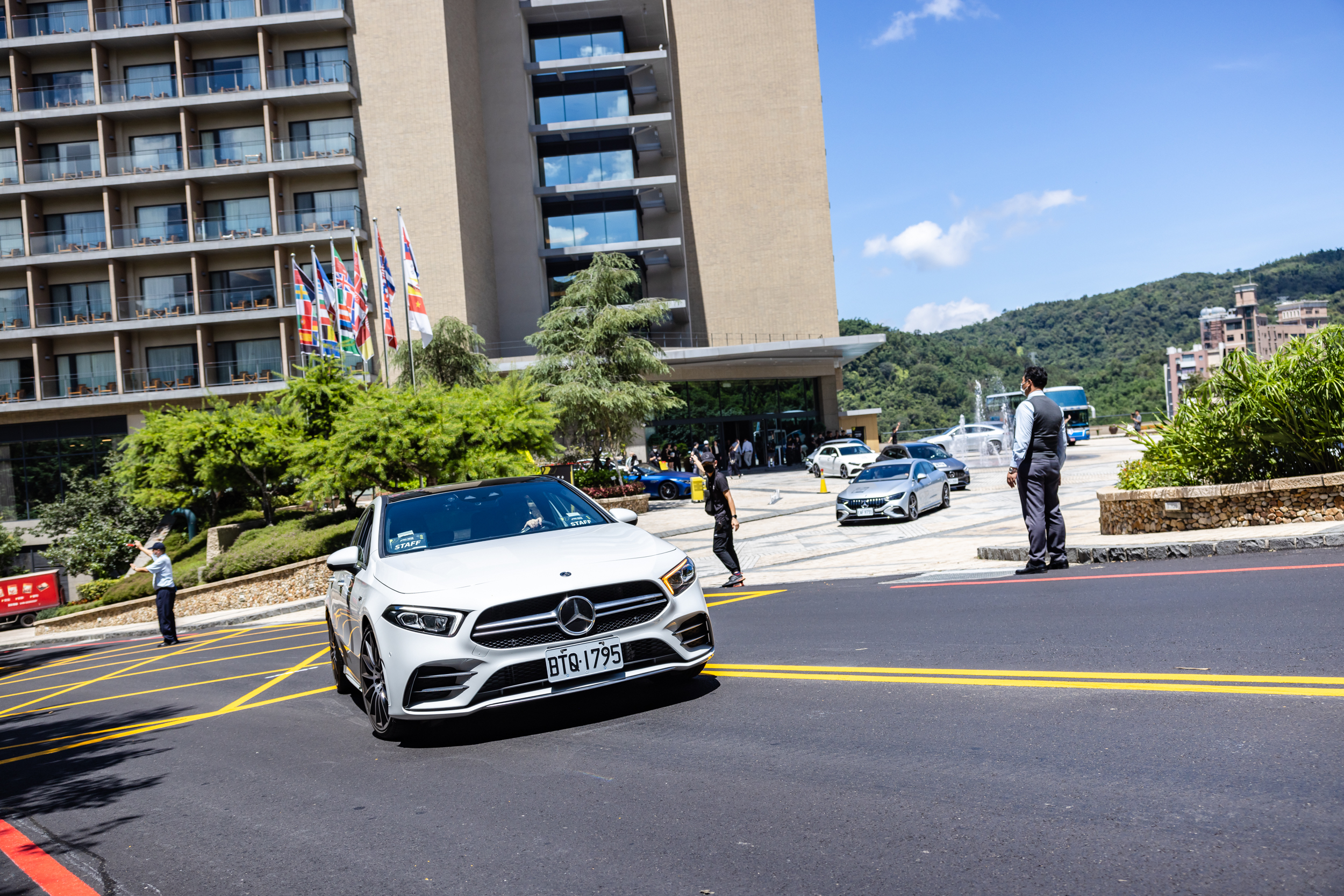 第二天一早,本次AMG性能之旅迎來了更多的驚喜與挑戰,總共四個梯次的活動輪流進行,除了每位貴賓最期待的AMG性能車款試駕,提供包含全新電動車EQE 43、EQS 53以及全新改款C43、SL 43等車款體驗之外,於室內更設置三部賽車模擬器,提供不同難度的國際賽道選擇,讓貴賓化身F1一級方程式賽車手,感受於賽道上全力衝刺的速度體驗;一旁則是IWC錶款鑑賞講座,帶領貴賓們深入鑑賞IWC萬國錶的精密製錶工藝;此外,本次活動的最大亮點之一便是展示於雲品溫泉酒店正門口的AMG 賽道始祖 300 SEL 6.8,在了解這輛骨董賽車的傳奇故事後,我們也邀請每位車主貴賓於展示車旁一同合照,並且最後可將這難得的合照放入活動證書中帶回留念。活動最後,40組的車主貴賓一同來到了日月潭地區知名的一味無二綠食坊,在這裡車主貴賓們一同享用創意當地料理,並在吃飽喝足後準備各自上路返家,為這次的活動畫下完美句點。