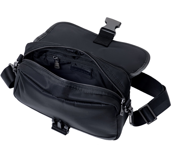 簡潔百搭的黑色郵差包款,前方綴有霧面槍灰色的三芒星標誌,運用真皮包邊,質感滿分,滿足都市休閒風格穿搭,恣意享受生活。